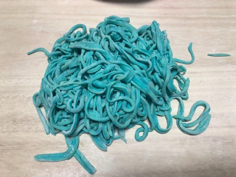 1.まず青い麺を用意します2.それを茹でてからこうじゃ!